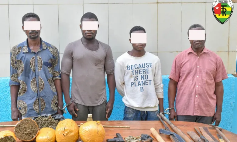 Les suspects, identifiés comme K. Komi (49 ans), A. Komi (27 ans), K. Kokou (25 ans) et A. Akiza (60 ans), sont accusés de détention illégale et de commerce illicite d’armes, de munitions et de drogues.